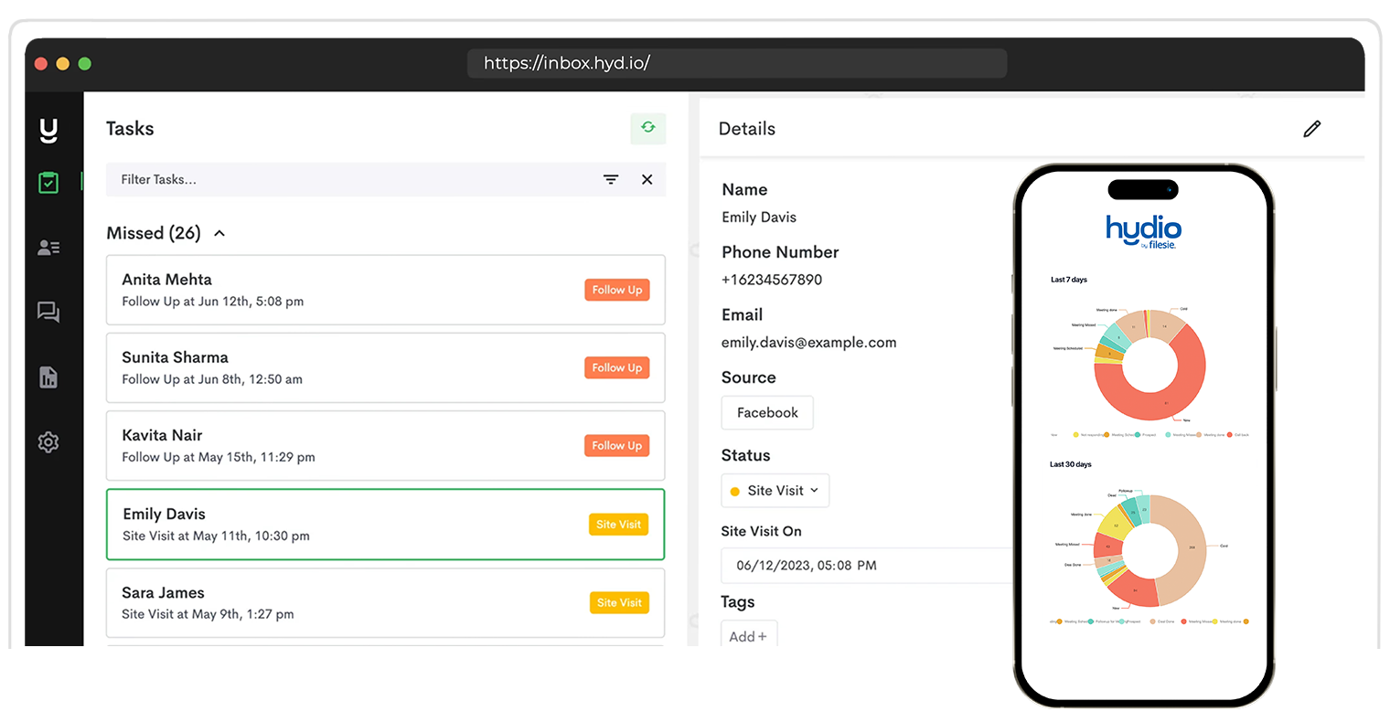 If you already use a CRM like Zoho, HubSpot, or Salesforce — Hydio becomes your performance feedback layer. If you don’t have a CRM, it gives you just enough to manage leads smartly — without overkill.